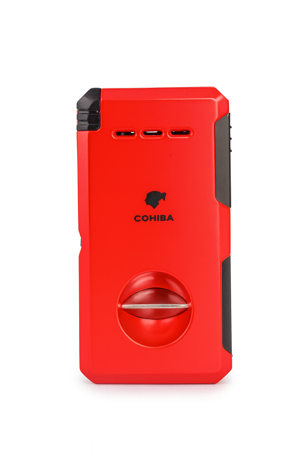 Cohiba CCM0585 Gazlı Çakmak, çakmak ve entegre puro delicisini tek bir gövdede birleştiren fonksiyonel ve şık bir üründür. Parlak kırmızı rengi ve keskin hatlı tasarımıyla dikkat çeker. Çift jet alevli torch sistemi sayesinde güçlü ve rüzgâra dayanıklı ateşleme sunar. Alt kısımdaki döner mekanizmalı puro delici (punch cutter), her ortamda pratiklik sağlar. Hem kullanım kolaylığı hem de estetik görünüm arayan puro severler için ideal bir çözümdür.