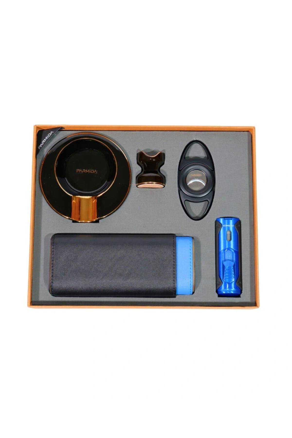 🟡 Ürün Açıklaması: Parmida PST0145 puro seti, şıklık ve fonksiyonelliği bir araya getiren premium puro aksesuar setidir. Koleksiyon değerindeki bu set, puro severlerin tüm ihtiyaçlarını tek kutuda sunmak üzere özenle hazırlanmıştır. Set içerisinde yer alan jet alevli çakmak, paslanmaz çelik puro kesici, puro standı, küllük ve mavi deri puro kılıfı, puro deneyiminizi en üst seviyeye taşır. Her detayıyla Parmida’nın lüks çizgisini yansıtan bu set, hediye olarak da mükemmel bir tercihtir.