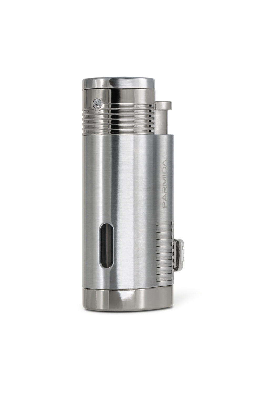 🟡 Ürün Açıklaması: Parmida PCM0888 puro çakmağı, modern çizgilere sahip tam metal gümüş gövdesi ile şıklığı ve dayanıklılığı bir araya getirir. Güçlü 3 torch jet flame sistemi sayesinde puroyu hızlı ve eşit şekilde yakar. Şeffaf gaz göstergesi, doluluk seviyesini kolayca takip etmenizi sağlar.